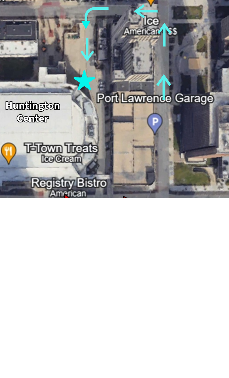 Directions to Huntington Center Ring Girl / Fighter Entrance from Port Lawrence Garage